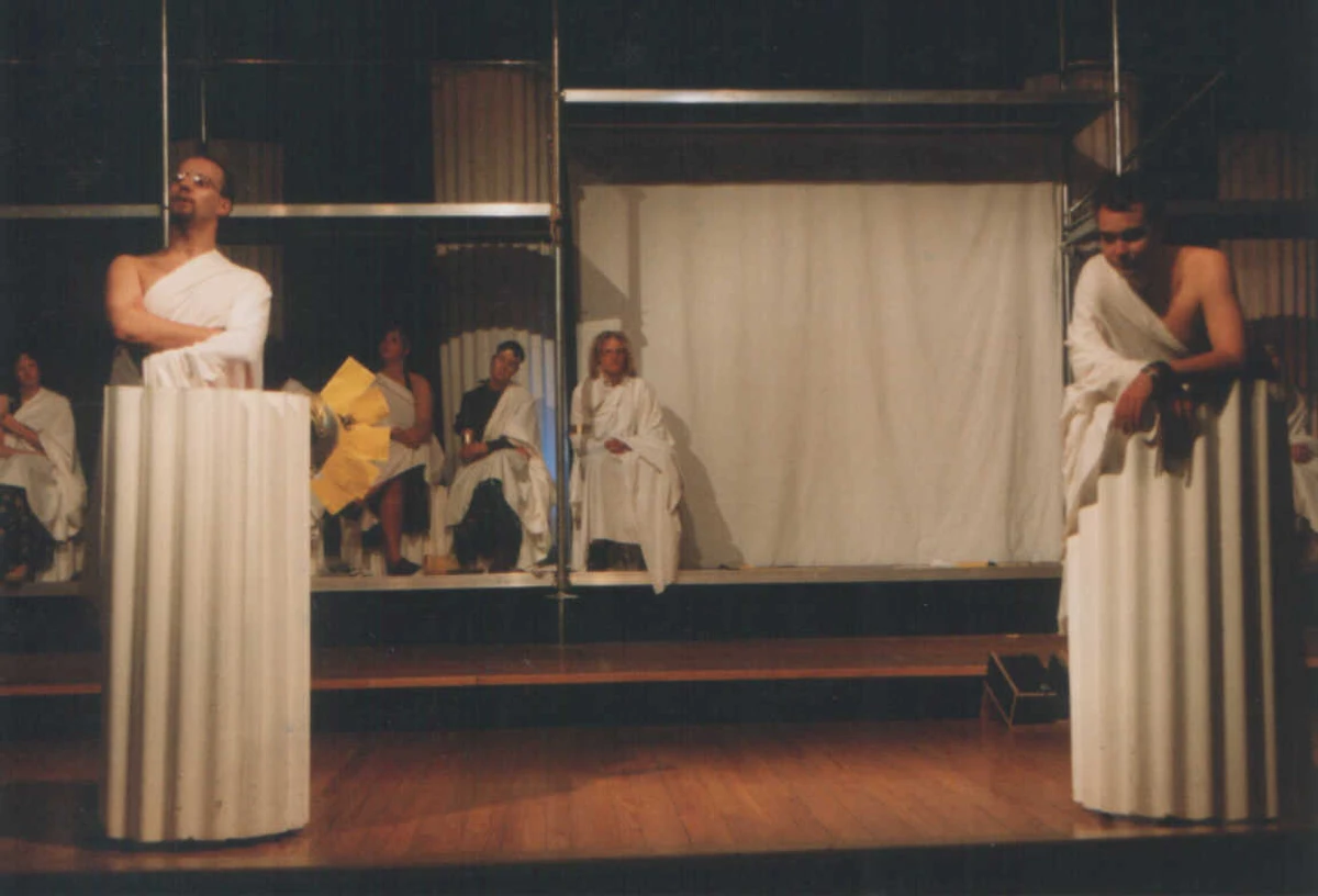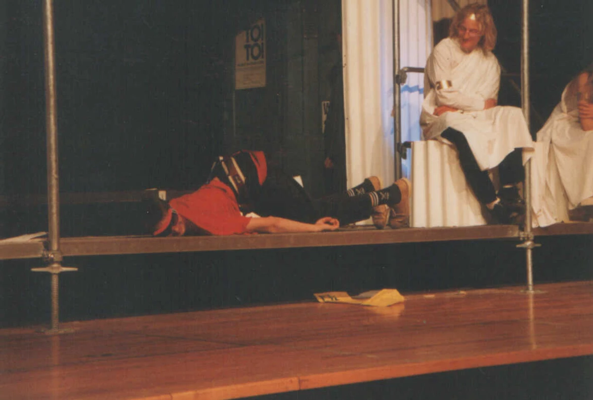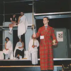 In diesem Stück steht alles zur Disposition, jede Ebene wird gebrochen und in Frage gestellt: Bühnenraum und Zuschauerraum, Darsteller und Zuschauer, Stück und Autor, Requisiten und Kostüme. Es wird gespielt, daß gespielt wird. Es wird Theater als Theater inszeniert.