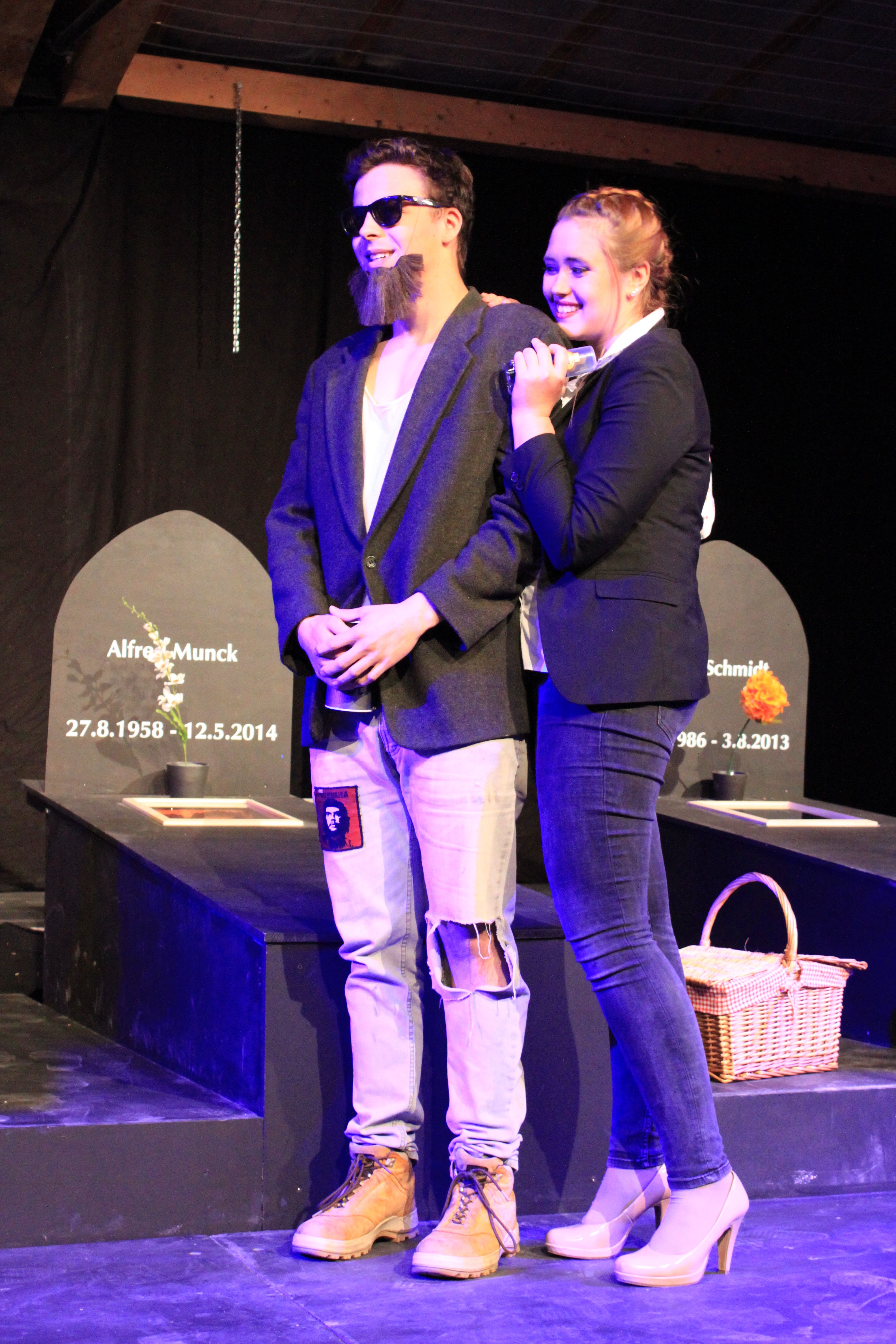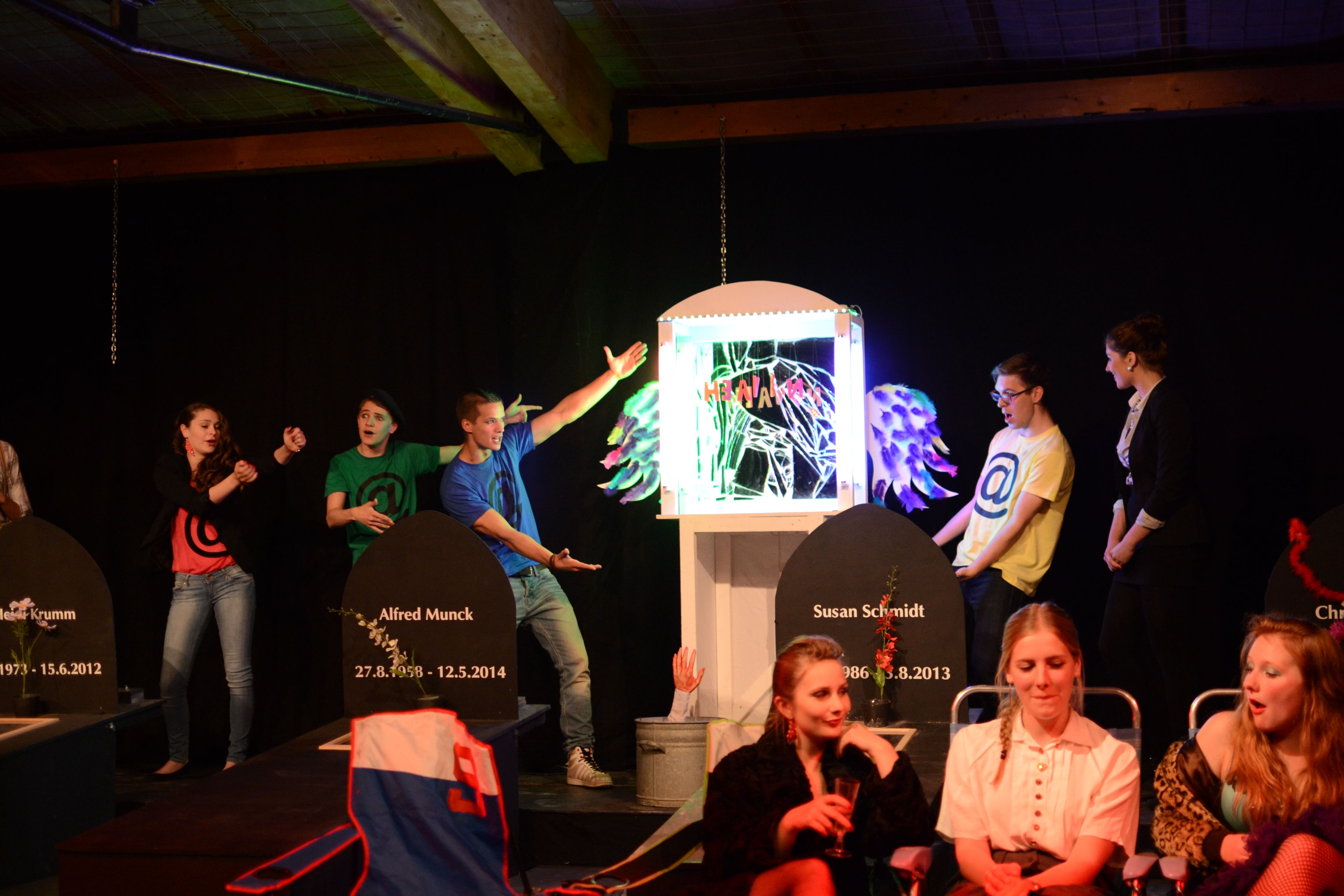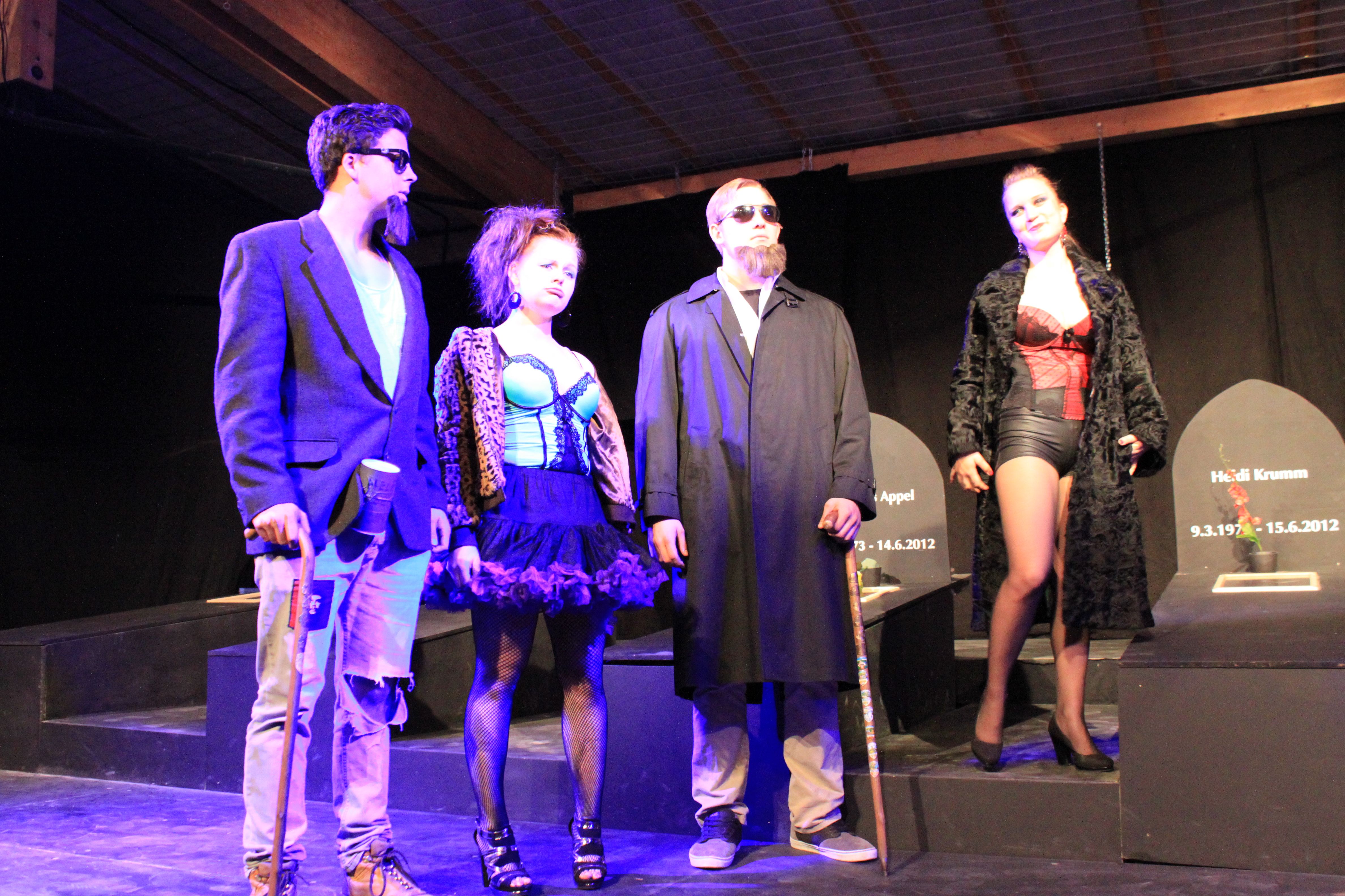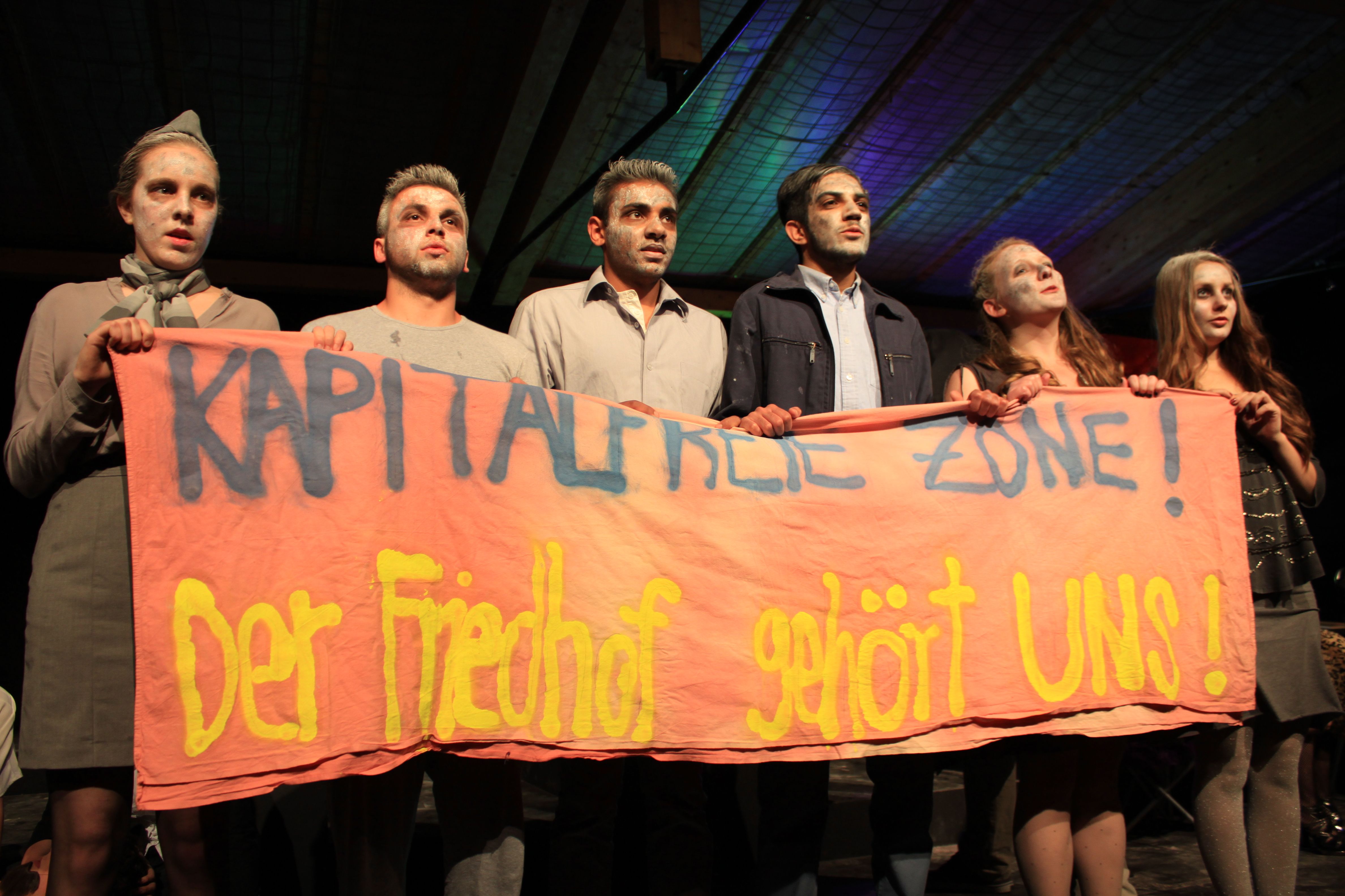 Dazu haben die Schüler als Handlungsort für ihr weitgehend selbst entwickeltes Stück ausgerechnet einen Friedhof gewählt. „Die Grundidee ist durchaus gesellschaftskritisch“, so der Leiter der Theater-AG Paul Möllers, “denn es geht um die Frage, ob alle Bereiche der Gesellschaft dem kapitalistischen Vermarkungsinteresse ausgesetzt werden dürfen. Wir haben diese Frage mit der Wahl des Handlungsortes auf die Spitze getrieben.“
