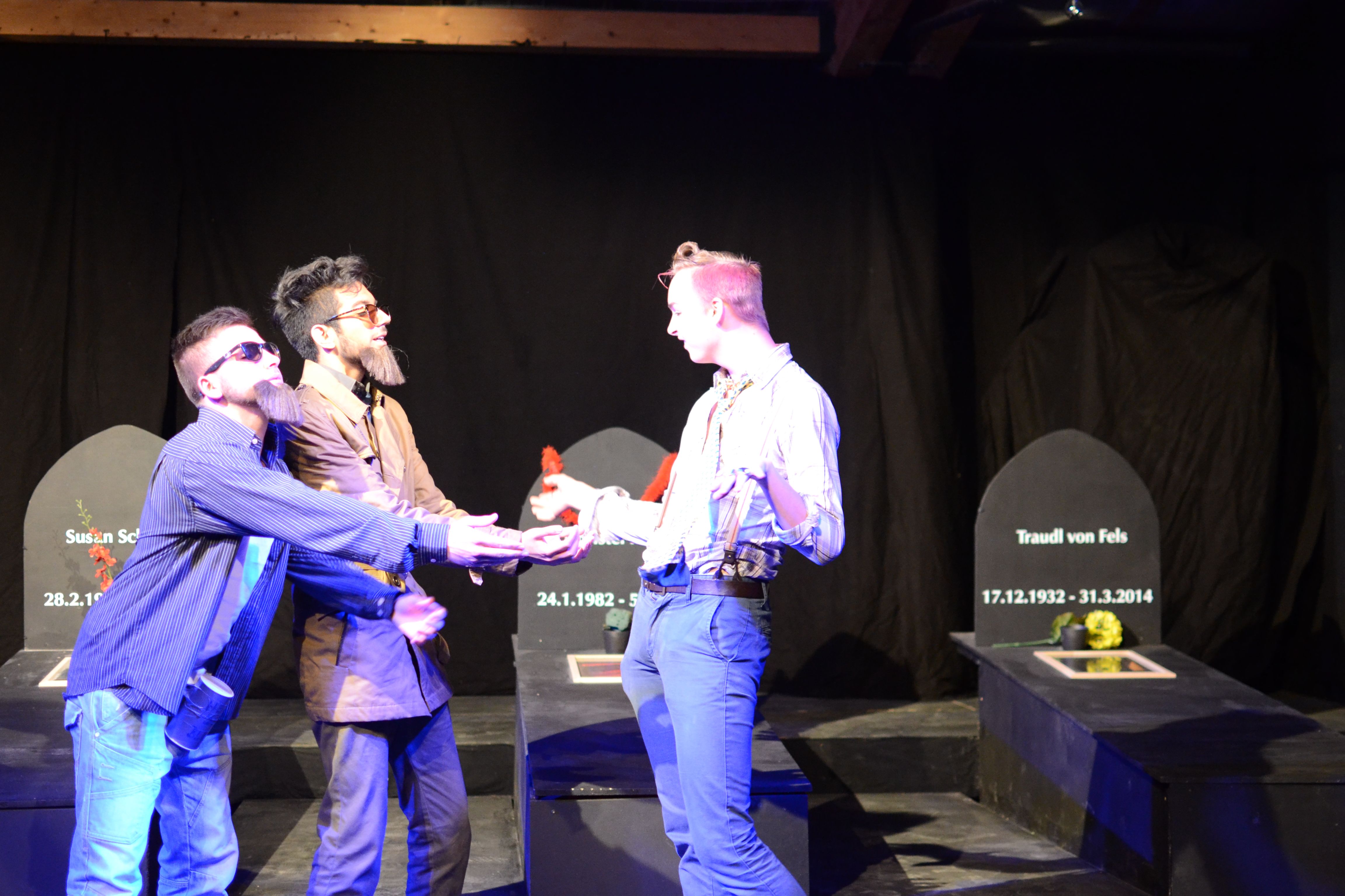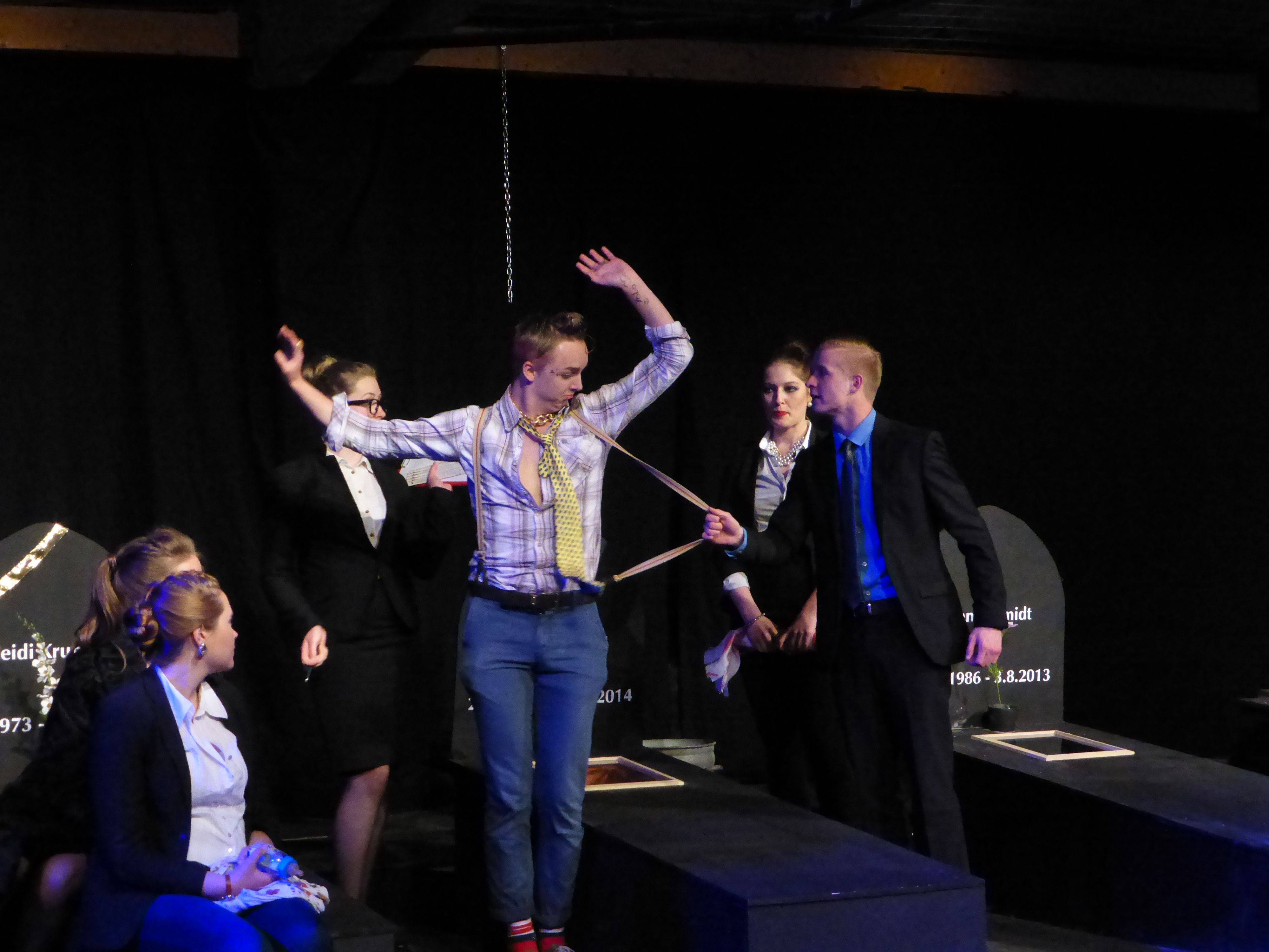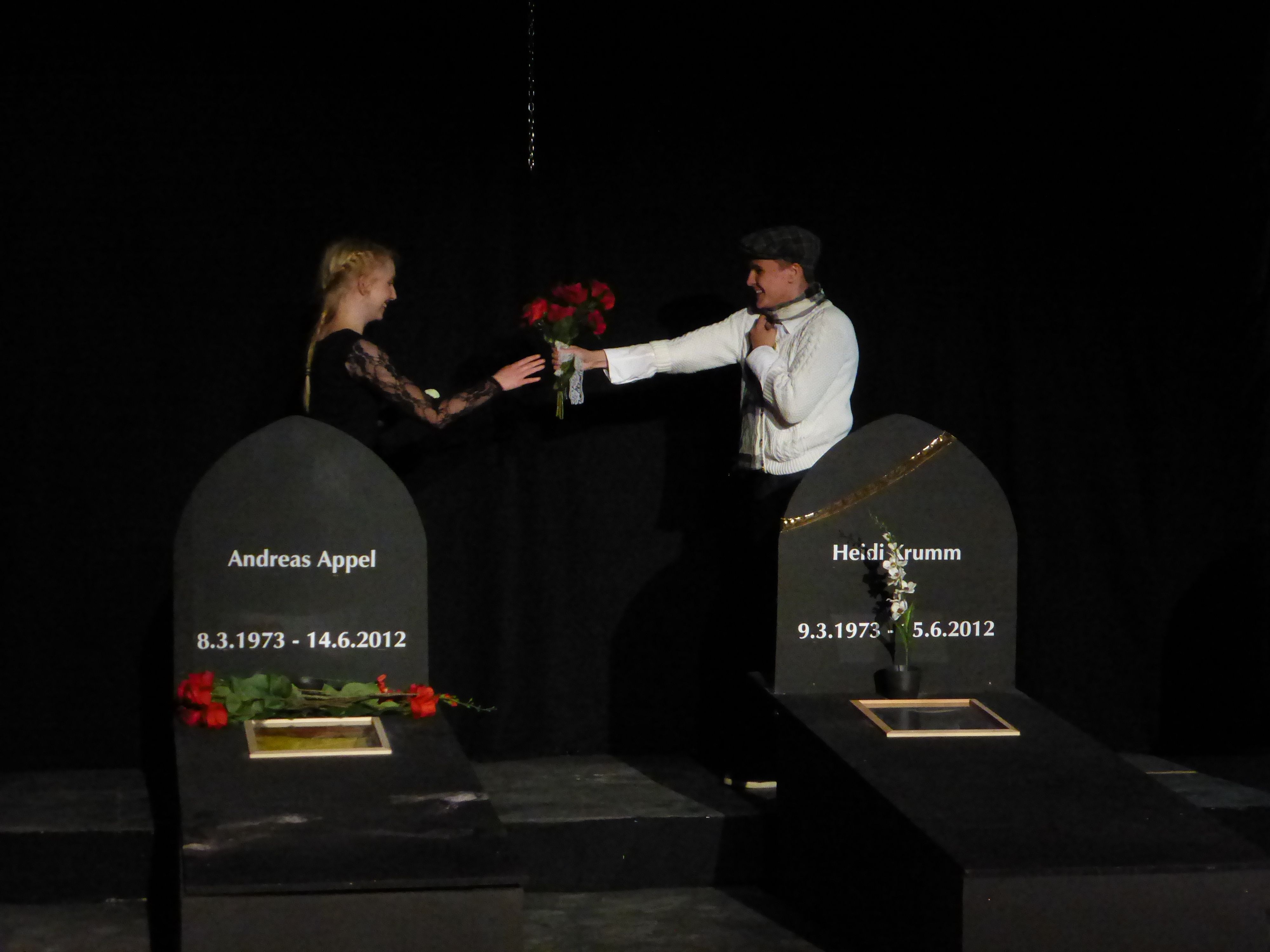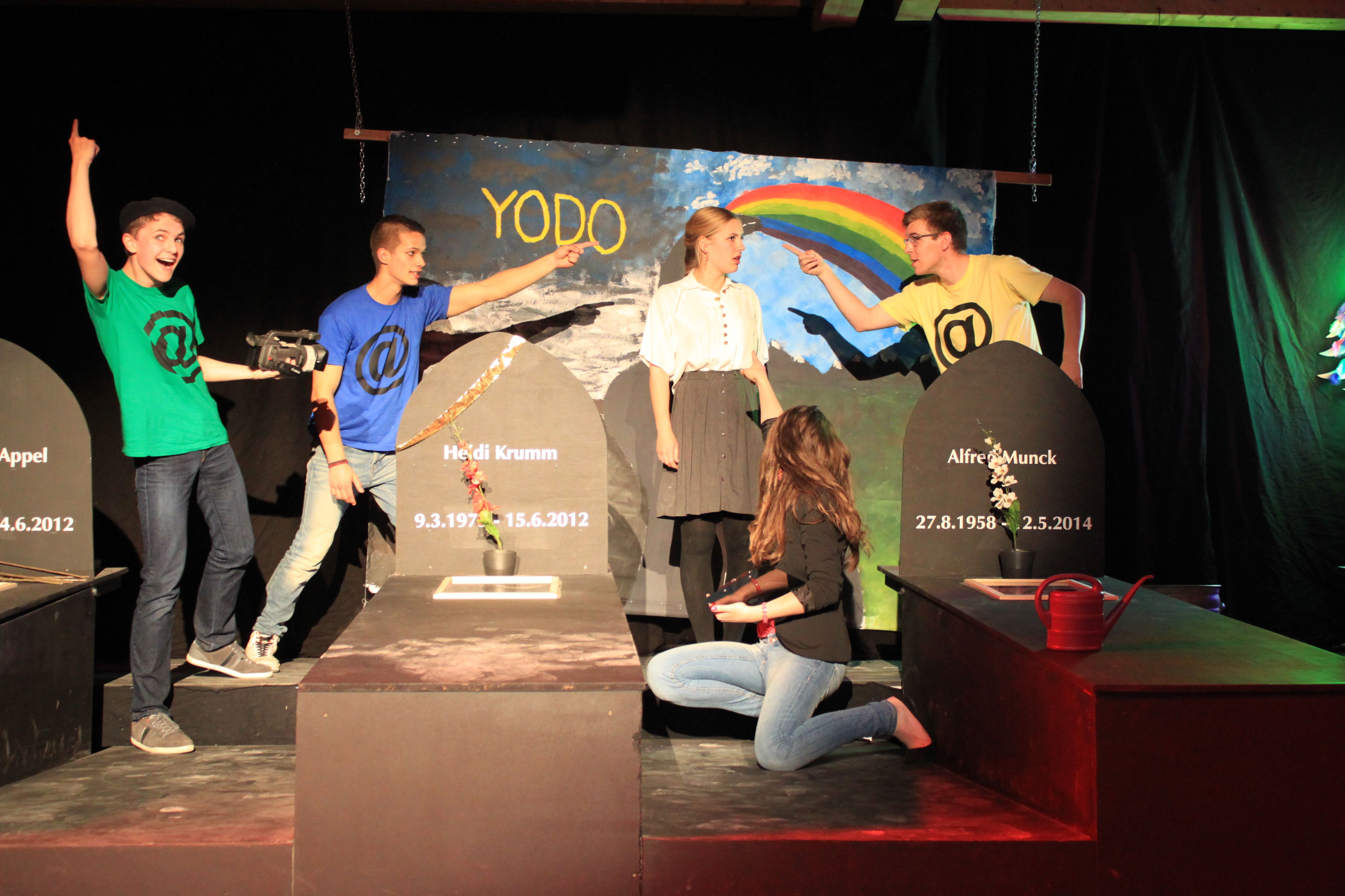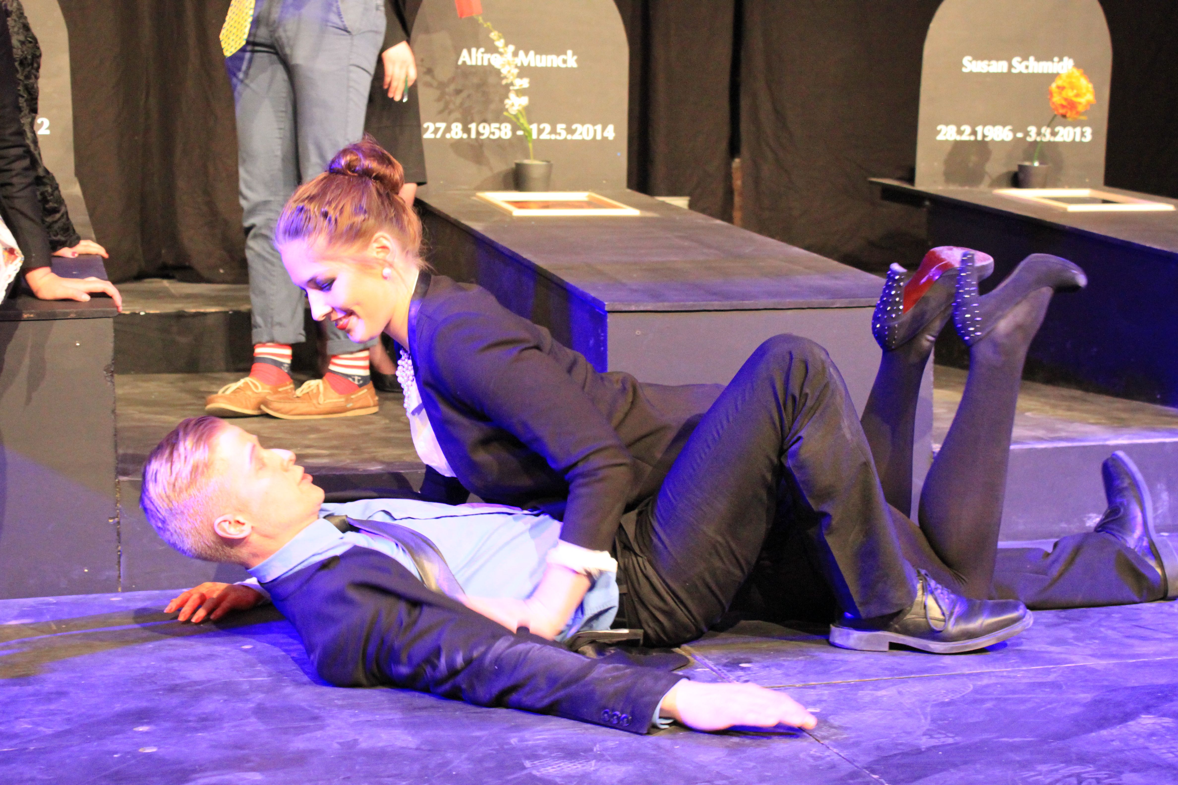 Dazu haben die Schüler als Handlungsort für ihr weitgehend selbst entwickeltes Stück ausgerechnet einen Friedhof gewählt. „Die Grundidee ist durchaus gesellschaftskritisch“, so der Leiter der Theater-AG Paul Möllers, “denn es geht um die Frage, ob alle Bereiche der Gesellschaft dem kapitalistischen Vermarkungsinteresse ausgesetzt werden dürfen. Wir haben diese Frage mit der Wahl des Handlungsortes auf die Spitze getrieben.“